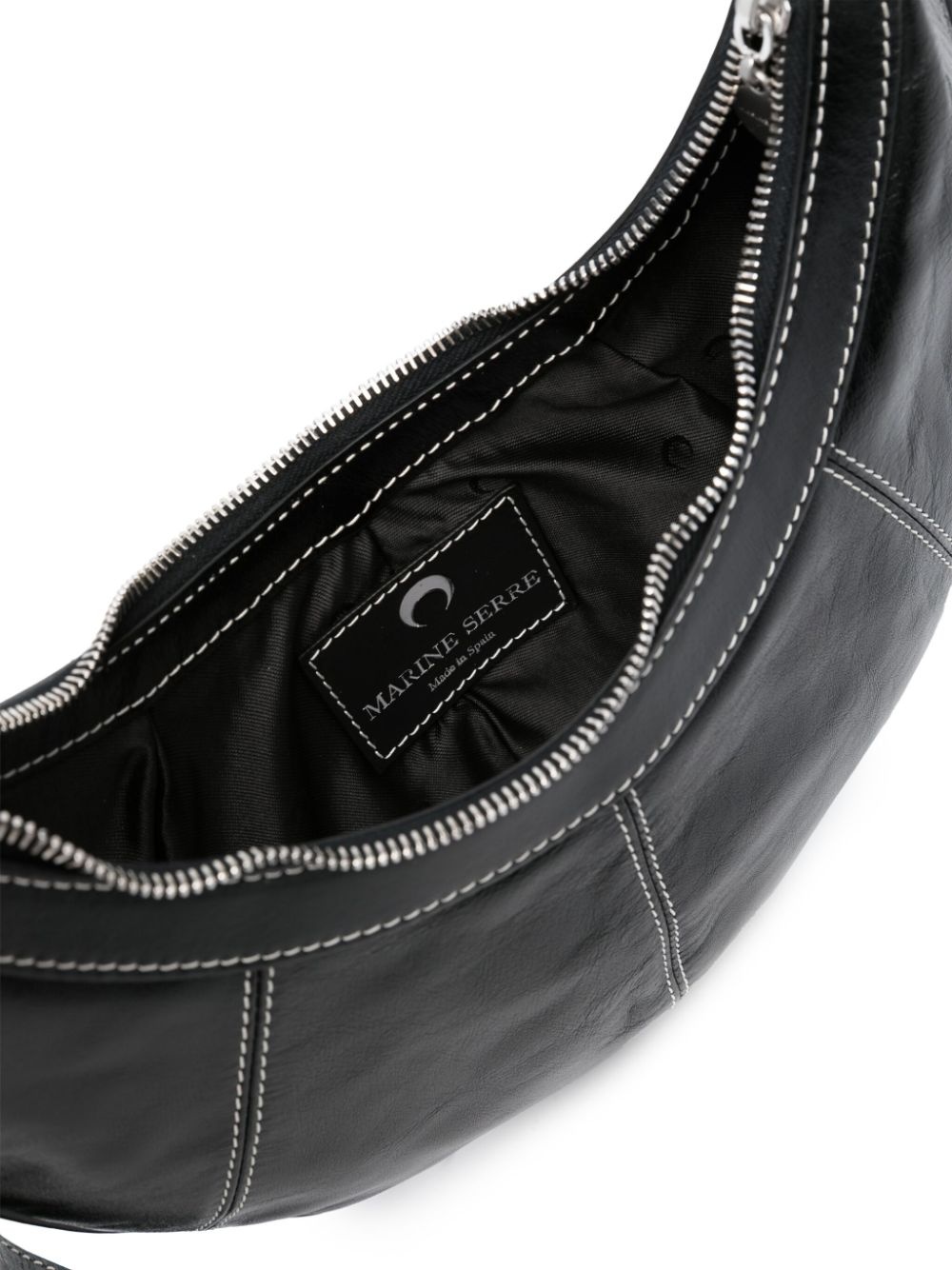 Soft Moon leather shoulder bag This bag is highly identifiable as Marine Serre's with its signature Moon shape. It is made of soft leather and features branded buckles and a zipper closure that adds to its recognizability. Highlights - Black - Calf leather - Contrast stitching - Branded zip puller - Adjustable shoulder strap - Logo-engraved silver-tone hardware - Top zip fastening - Main compartment - Internal logo patch Imported Composition Outer: Calf Leather 100% SIZE & FIT Model measurements Height 5 ft 11 in(1.8 m) Bust/Chest 31.9 in(81 cm) Hips 33.9 in(86 cm) Waist 23.6 in(60 cm) Measurement DEPTH 1.2 in(3 cm) HANDLE 12.2 in(31 cm) HEIGHT 12.2 in(31 cm) STRAP 25.2 in(64 cm) WIDTH 9.8 in(25 cm)