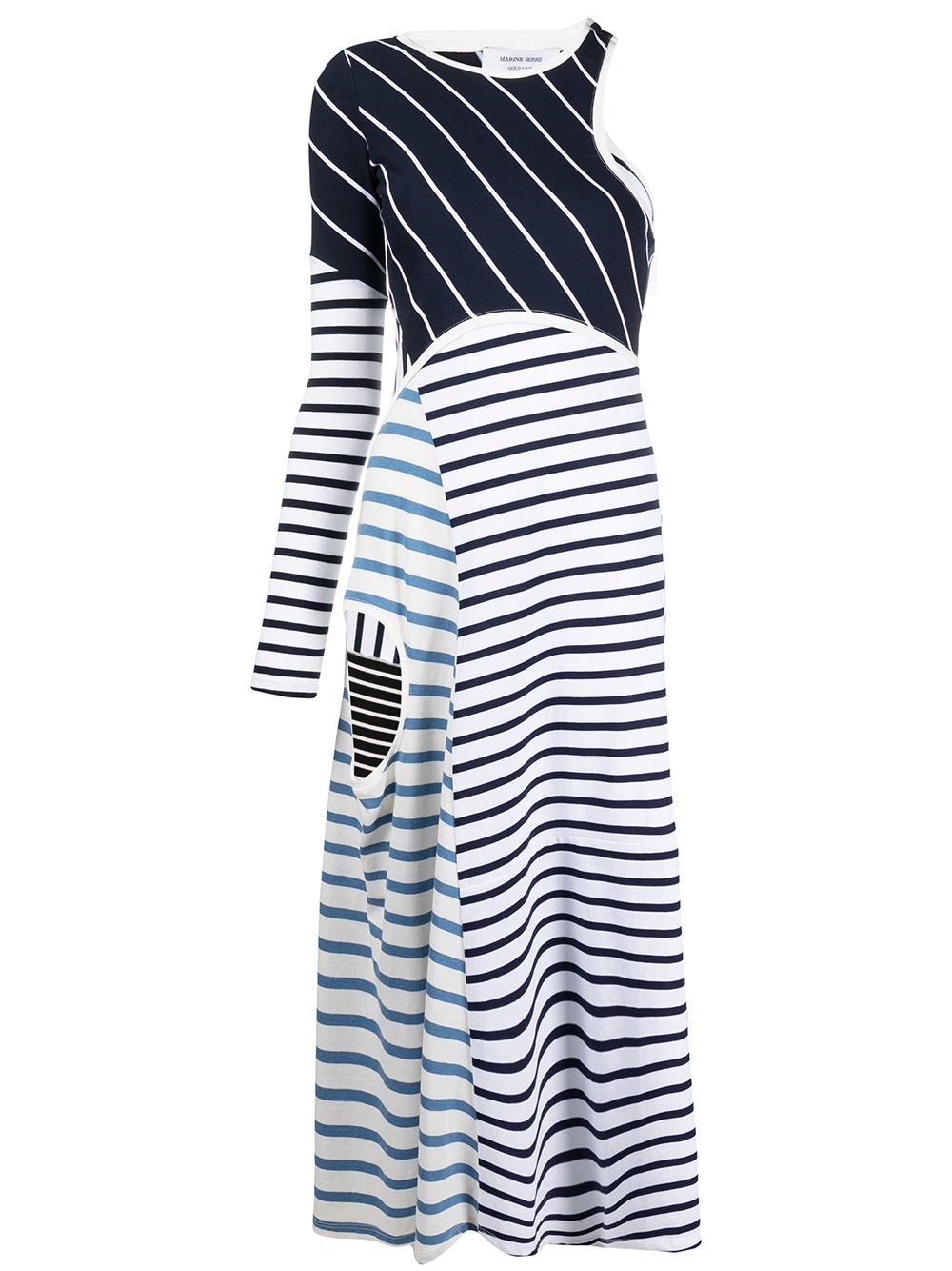 striped cut-out asymmetric dress navy blue/light blue/white cotton flared round neck long sleeves mid-length Made in France Composition Cotton 100% SIZE & FIT Model measurements Height 5 ft 10 in(1.78 m) Bust/Chest 31.49 in(80 cm) Hips 36.22 in(92 cm) Waist 25.59 in(65 cm) Measurement HIPS 35.43 in(90 cm) WAIST 26.77 in(68 cm) BUST 29.92 in(76 cm) FittingInformation This piece fits true to size. We recommend you get your regular size Designed for a close fit at the bust, waist and hips Made with a mid-weight fabric Washing instructions Machine Wash
