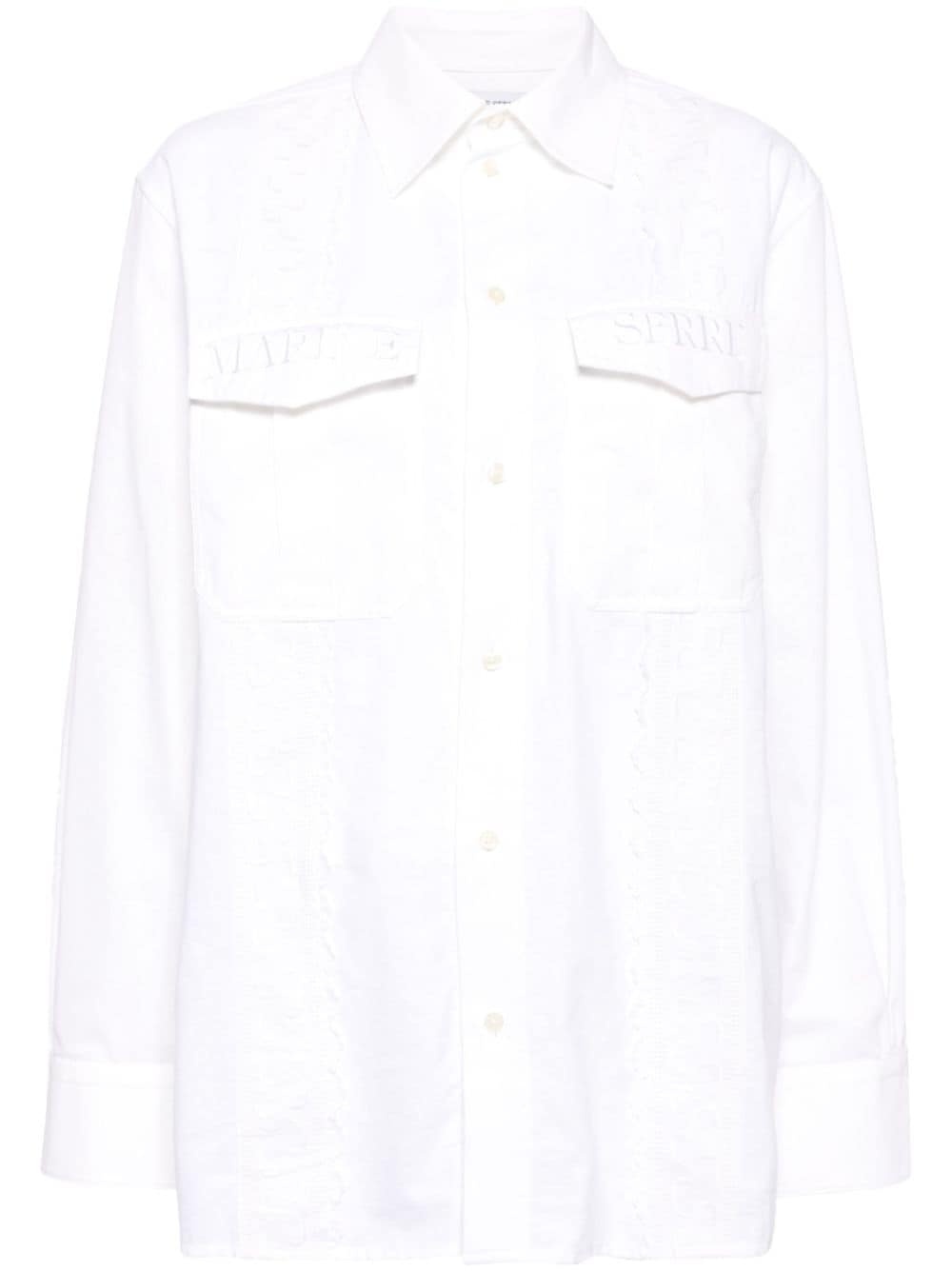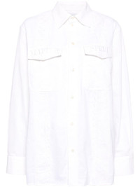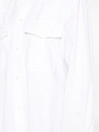 upcycled twin pocket shirt Highlights - Household linen white - Cotton - Embroidered logo at the pockets - Two front flap pockets - Classic collar - Front button fastening - Long sleeves - Buttoned-cuff sleeves - High-low curved hem Imported Composition Cotton 100% SIZE & FIT Model measurements Height 5 ft 10 in(1.77 m) Bust/Chest 27.95 in(71 cm) Hips 34.64 in(88 cm) Waist 22.83 in(58 cm) FittingInformation Designed to be unstructured, offering a loose fit throughout Made from a midweight non-stretch fabric This piece fits true to size – take your usual size