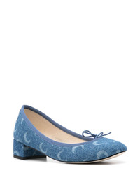 x Camille Repetto 30mm Moon-print pumps Highlights - Indigo blue - Low block heel - Branded leather insole - Lace-up detailing - This piece comes complete with a protective dust bag. Made in France Composition Sole: Calf Leather 100% Lining: Fabric 100%, Calf Leather 100% Outer: Fabric 100% SIZE & FIT Measurement HEEL 1.18 in(3 cm)