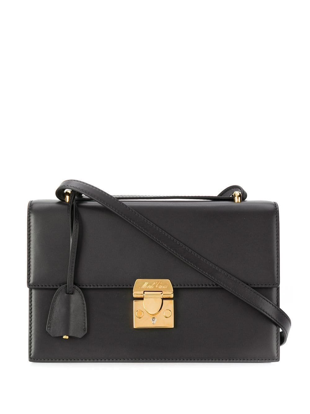 Downtown crossbody bag Black leather Downtown crossbody bag from Mark Cross featuring a foldover top with push-lock closure, an adjustable shoulder strap, gold-tone hardware and an internal zipped pocket. Made In Italy Composition Outer: Calf Leather 100% SIZE & FIT Model measurements Height 5 ft 10 in(1.77 m) Bust/Chest 32.28 in(82 cm) Hips 35.82 in(91 cm) Waist 24.8 in(63 cm) Measurement WIDTH 9.84 in(25 cm) HEIGHT 5.11 in(13 cm) DEPTH 2.75 in(7 cm) STRAP 24.01 in(61 cm)
