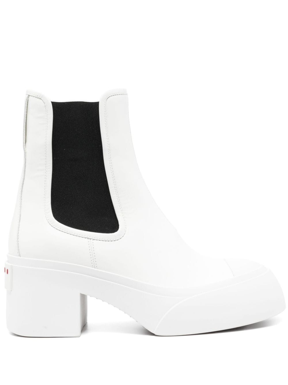 70mm leather Chelsea boots Highlights - White - Calf leather - Nappa leather - Elasticated side panels - 70mm block heel - Pull-on style - Embossed logo to the rear - Panel detailing - Round toe - Leather lining - Branded insole - Chunky rubber sole Made in Italy Composition Leather 100% SIZE & FIT Measurement CIRCUMFERENCE 8.66 in(22 cm) HEEL 2.75 in(7 cm) HEIGHT 5.9 in(15 cm) Sole height 1.77 in(4.5 cm)