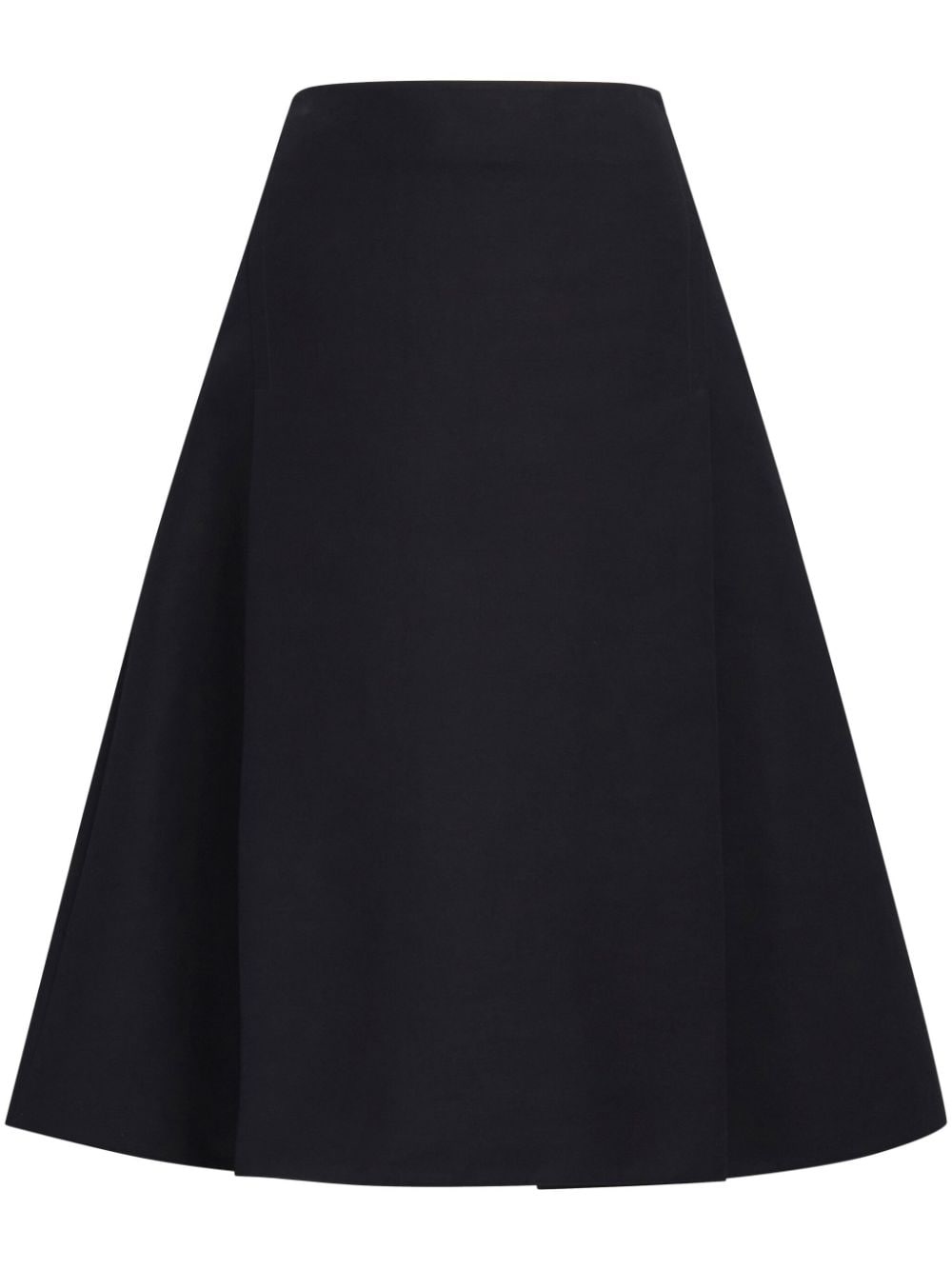 A-line cotton midi skirt Highlights - Jet black - Cotton - A-line - High-waisted - Concealed side fastening - Straight hem - Below-knee length Made in Italy Composition Cotton 100% SIZE & FIT Measurement HIPS 41.73 in(106 cm) LENGTH 27.95 in(71 cm) WAIST 29.13 in(74 cm) Washing instructions Do Not Wash/Do Not Dry Clean