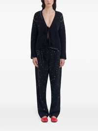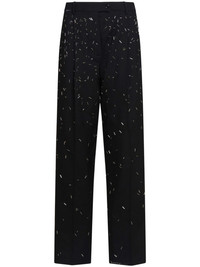 BLACK STRAIGHT CUT WOOL TROUSERS WITH BEAD DETAIL