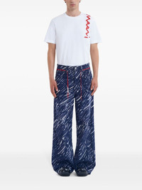 abstract-pattern print wide-leg jeans Highlights - Navy blue/white - Stretch-cotton - Abstract pattern print - Front button fastening - Belt loops - Classic five pockets - Logo patch to the rear - Wide leg Made in Italy Composition Cotton 98%, Elastane 2% Washing instructions Read Manufacturer Guidelines