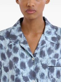 GREY SILK SHIRT WITH CRAYON LEOPARD PRINT