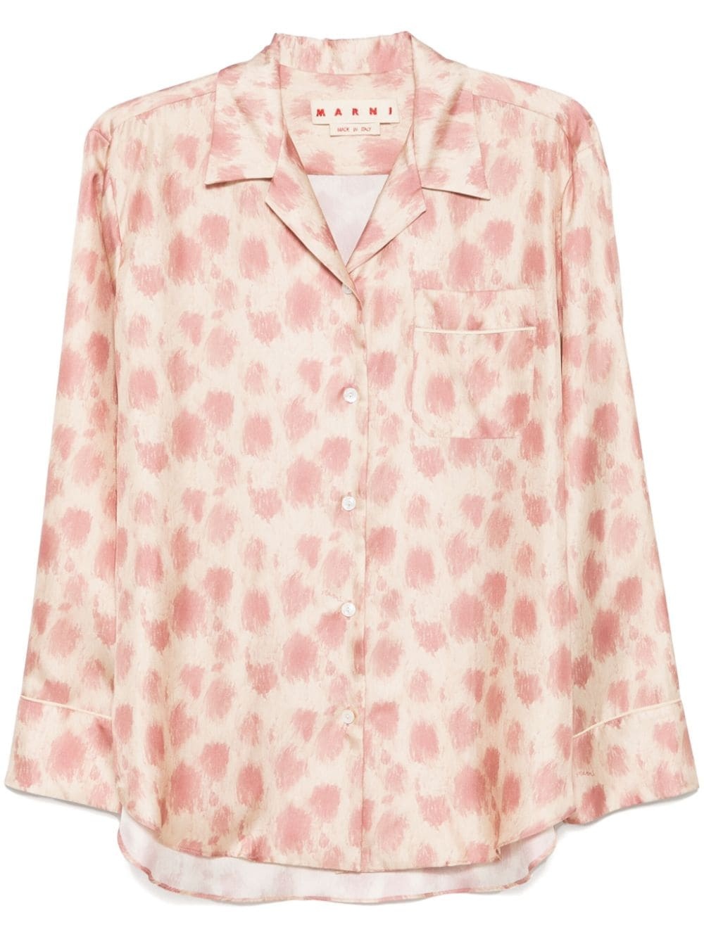 animal-print shirt Highlights - Light pink - Silk - Satin finish - Animal print - Front button fastening - Classic collar - Long sleeves - Buttoned cuffs - Chest patch pocket - Curved hem Made in Italy Composition Silk 100% SIZE & FIT Model measurements Height 5 ft 9 in(1.75 m) Bust/Chest 31.88 in(81 cm) Hips 34.64 in(88 cm) Waist 24.01 in(61 cm) FittingInformation Designed to be unstructured, offering a loose fit throughout Made from a lightweight non-stretch fabric