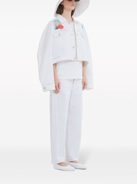 WHITE DENIM TROUSERS WITH FLOWER PATCH