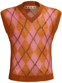 argyle-intarsia V-neck vest Highlights - Blush pink/camel brown - Mohair blend - Argyle intarsia knit - Ribbed-knit edge - V-neck - Sleeveless - Straight hem Made in Italy Composition Mohair 67%, Polyamide 28%, Wool 5%