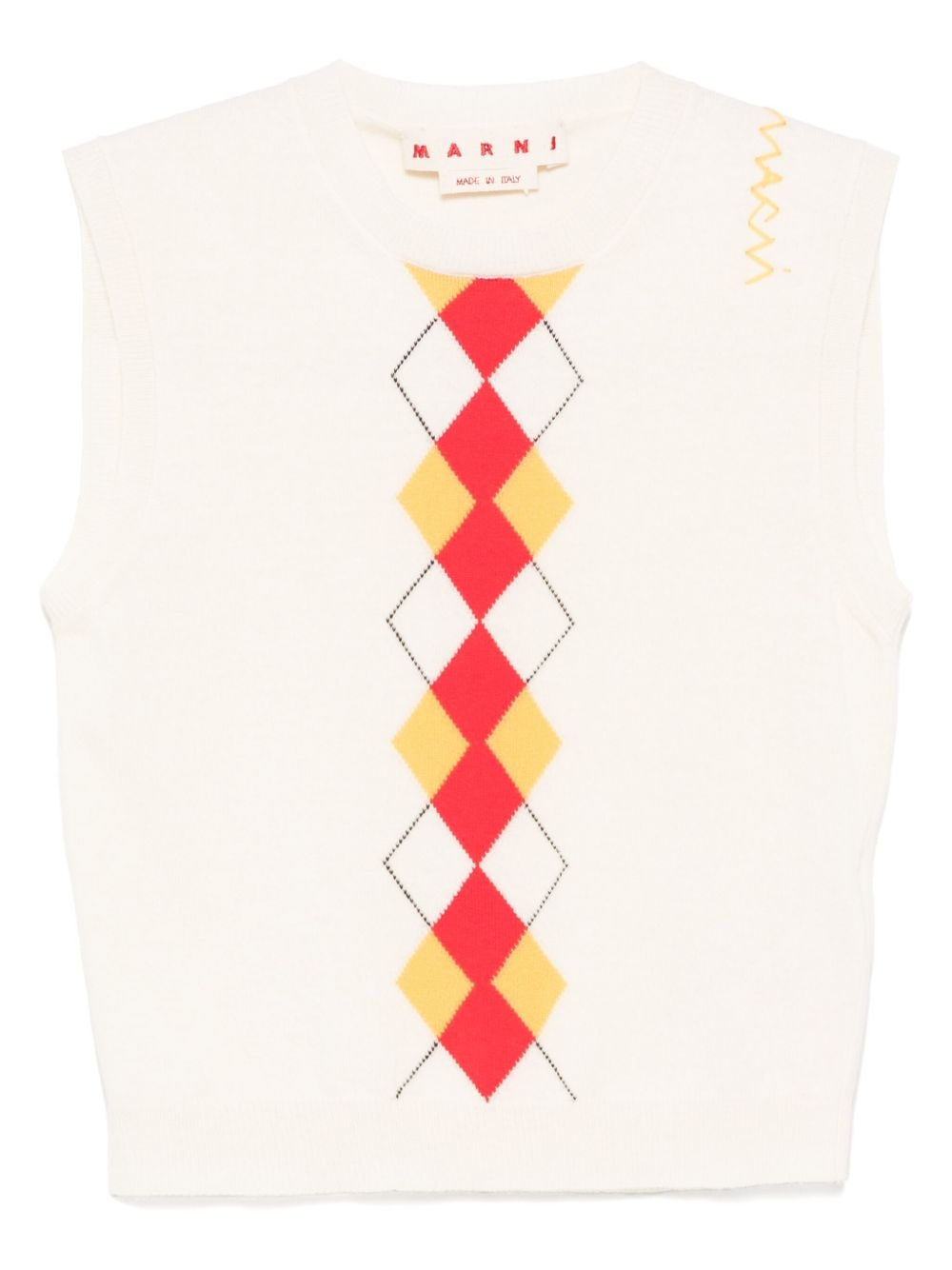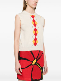 argyle-pattern vest Highlights - Light beige - Embroidered logo to the front - Ribbed trim - Crew neck Made in Italy Composition Virgin Wool 100% SIZE & FIT Model measurements Height 5 ft 9 in(1.75 m) Bust/Chest 31.88 in(81 cm) Hips 34.64 in(88 cm) Waist 24.01 in(61 cm) FittingInformation Designed for a relaxed fit, this piece allows for comfort and movement when worn The ribbed hem offers a close, comfortable fit Made with a lightweight knit, this piece offers some stretch Washing instructions Dry Clean Only