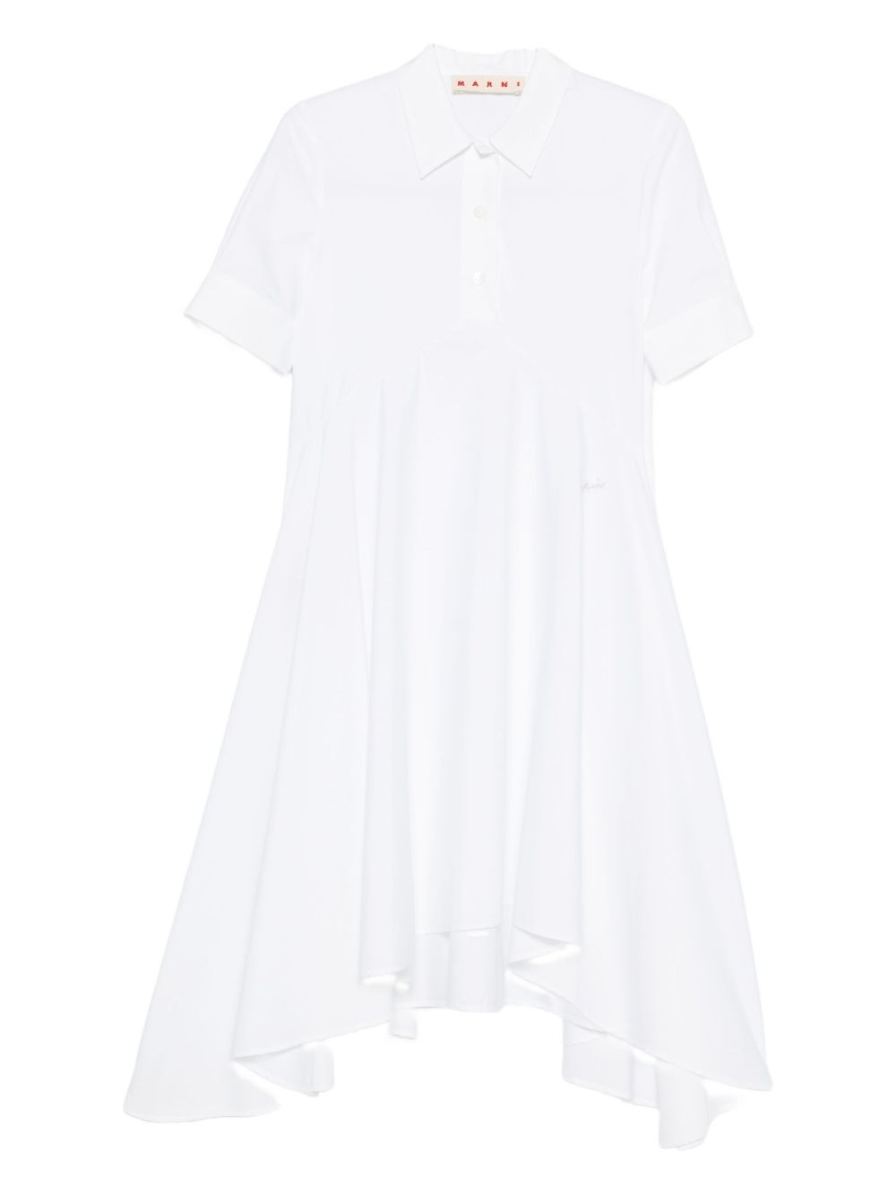 asymmetric cotton dress Highlights - White - Cotton - Short sleeves - Asymmetric hem - Front button fastening - Polo collar - Gathered detail Imported Composition Cotton 100% SIZE & FIT Model measurements Height 5 ft 9 in(1.76 m) Bust/Chest 31.49 in(80 cm) Hips 35.43 in(90 cm) Waist 23.62 in(60 cm) Washing instructions Read Manufacturer Guidelines