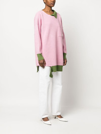 Shetland asymmetric jumper Highlights - Rose pink/fern green - Cotton - Ribbed knit - Colour-block design - Asymmetric design - Logo patch at the chest - Pointed flat collar - Round neck - Drop shoulder - Long sleeves - Chest patch pocket - Asymmetric hem - Raw edge Made in Italy Composition Virgin Wool 70%, Cotton 30% SIZE & FIT Model measurements Height 5 ft 11 in(1.8 m) Bust/Chest 31.49 in(80 cm) Hips 36.61 in(93 cm) Waist 24.4 in(62 cm)