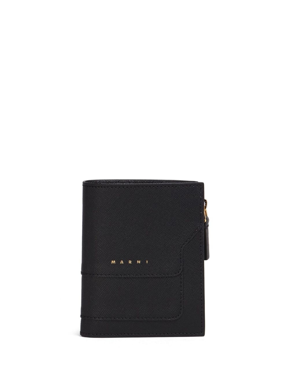 bi-fold leather wallet black leather grained texture embossed logo to the front zip-fastening pocket internal card slot internal note compartment press-stud fastening bi-fold design Made in Italy Composition Outer: Bovine Leather (top grain) 100%
