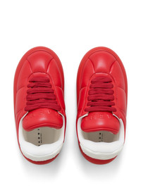 Bigfoot 2.0 sneakers Highlights - Bright red - Leather - Padded design - Front lace-up fastening - Contrasting branded heel counter - Logo-embroidered tongue - Round toe - Flat rubber sole Made in Italy Composition Outer: Ovine Leather (top grain) 100% Sole: Rubber 100% Lining: Polyester 100% SIZE & FIT FittingInformation This piece fits large – take one size down Measurement HEEL 1.57 in(4 cm) Sole height 1.37 in(3.5 cm)