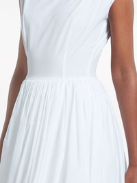 boat-neck cotton midi dress Highlights - Optical white - Cotton - Wide neck - Rear zip fastening - Cap sleeves - Fitted waistline - Full skirt - Puffball hem - Below-knee length Made in Italy Composition Cotton 100% Washing instructions Do Not Wash/Do Not Dry Clean