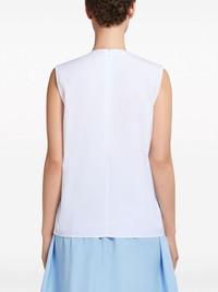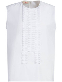 box-pleated bib poplin shirt Highlights - White - Cotton - Poplin texture - Box-pleat detail - Concealed rear zip fastening - Round neck - Sleeveless - Straight hem Imported Composition Cotton 100% Washing instructions Machine Wash
