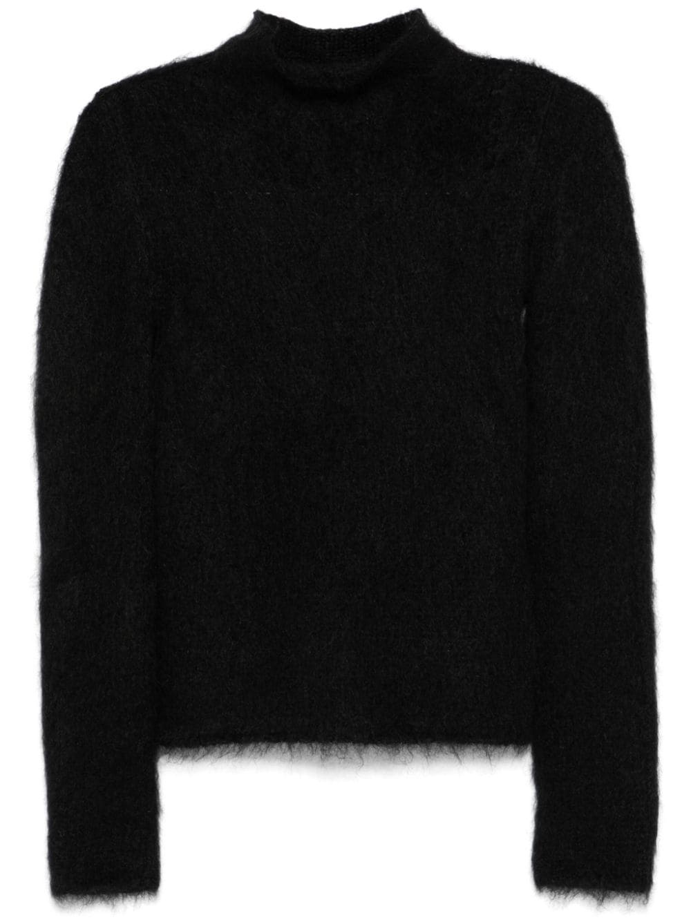 brushed sweater Highlights - Black - Mohair blend - Brushed finish - High neck - Long sleeves - Straight hem Made in Italy Composition Mohair 80%, Polyamide 20% SIZE & FIT Model measurements Height 5 ft 9 in(1.75 m) Bust/Chest 31.88 in(81 cm) Hips 34.64 in(88 cm) Waist 24.01 in(61 cm) FittingInformation Designed for a close fit throughout Made with a lightweight knit, this piece offers some stretch Washing instructions Dry Clean Only