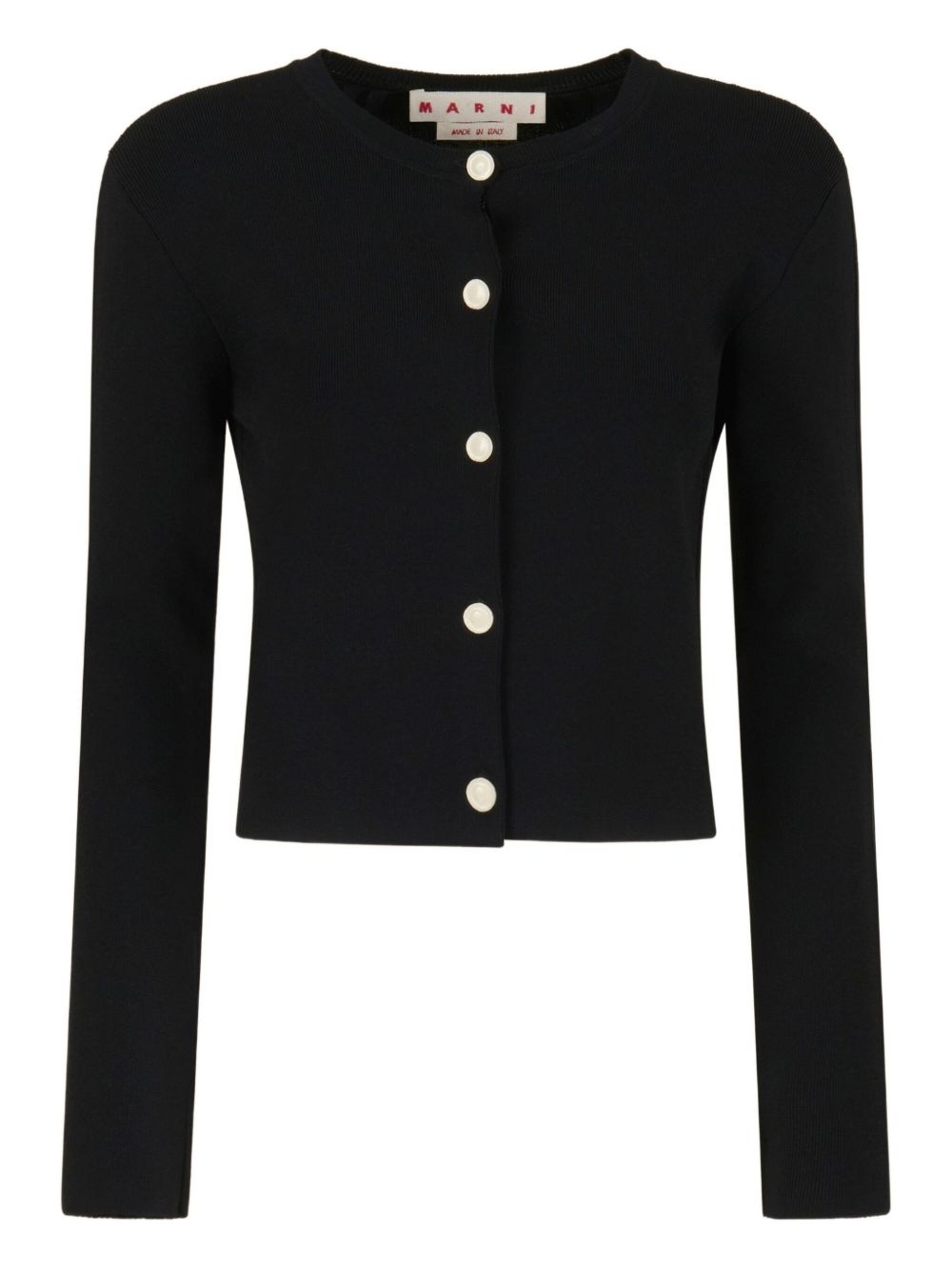 button-front long-sleeve cardigan Highlights - Black - Button fastening - Round neck - Long sleeves - Contrasting buttons Made in Italy Composition Viscose 82%, Polyester 18%