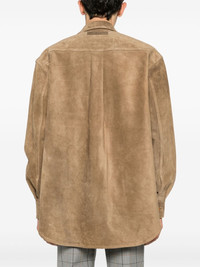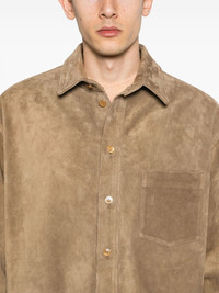 button-up suede overshirt Highlights - Taupe brown - Calf leather - Classic collar - Front button fastening - Long sleeves - Buttoned cuffs - Chest patch pocket - Curved hem Made in Italy Composition Lining: Cotton 100% Outer: Calf Leather 100% SIZE & FIT Model measurements Height 6 ft 2 in(1.87 m) Bust/Chest 36.41 in(92.5 cm) Hips 35.43 in(90 cm) Waist 29.52 in(75 cm) FittingInformation Designed for an oversized fit, offering additional room throughout Made from a midweight fabric This piece fits true to size – take your usual size