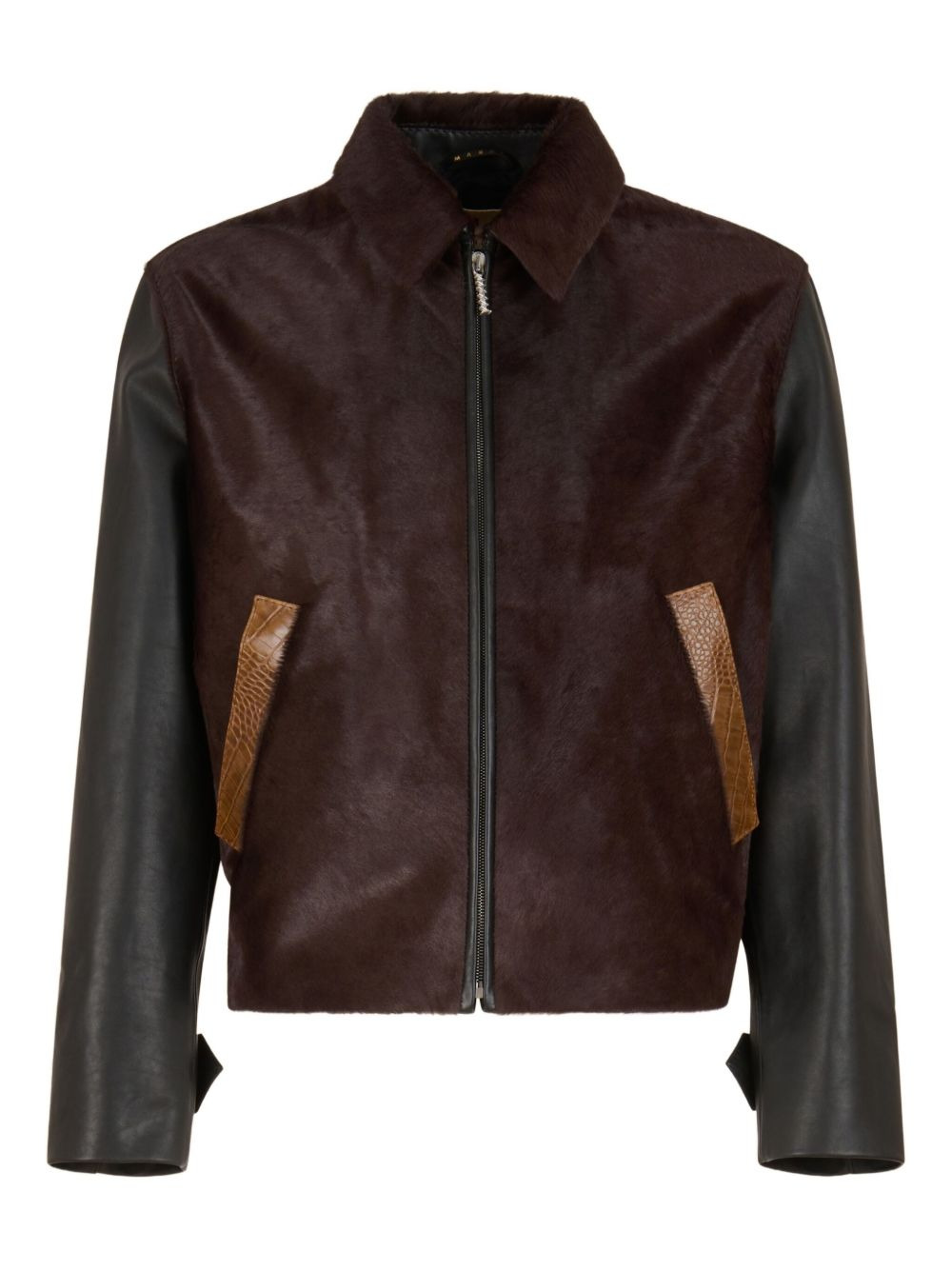 calf-hair leather jacket Highlights - Dark-brown - Calf hair - Leather sleeves - Zip fastening - Snakeskin-print welt pockets - Point collar Made in Italy Composition Outer: Calf Leather 100%, Calf Hair 100%, Cotton 100% Lining: Cotton 69%, Polyamide 31% Washing instructions Read Manufacturer Guidelines