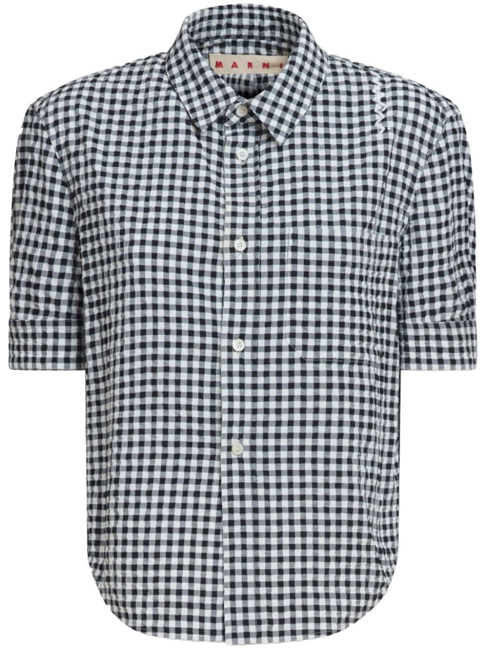 check pattern shirt Highlights - Black - Cotton blend - Check pattern - Button fastening - Chest patch pocket - Short sleeves - Curved hem Imported Composition Polyamide 51%, Cotton 49%