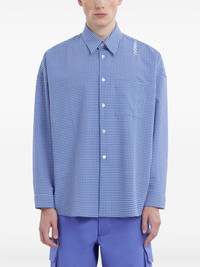 check pattern shirt Highlights - Blue - Virgin wool blend - Button fastening - Classic collar - Embroidered logo at the shoulder - Long sleeves - Chest patch pocket - Straight hem Imported Composition Polyester 53%, Virgin Wool 43%, Elastane 4%