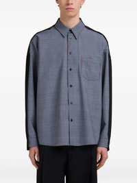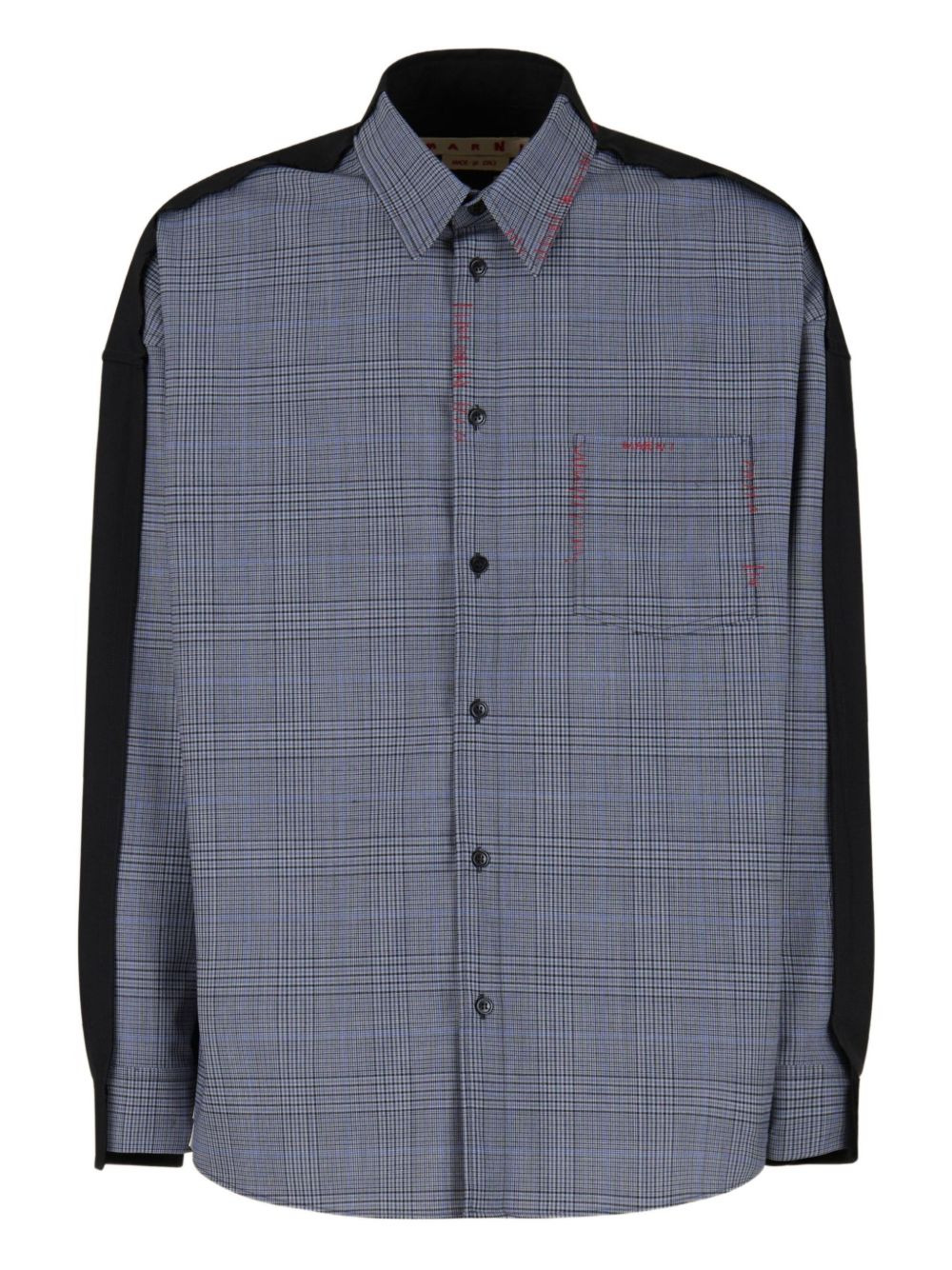 check-patterned long-sleeve shirt Highlights - Blue and grey - Check pattern - Chest pocket - Contrasting back - Button-fastening front - Straight-point collar Made in Italy Composition Polyester 53%, Virgin Wool 43%, Elastane 4% Washing instructions Read Manufacturer Guidelines