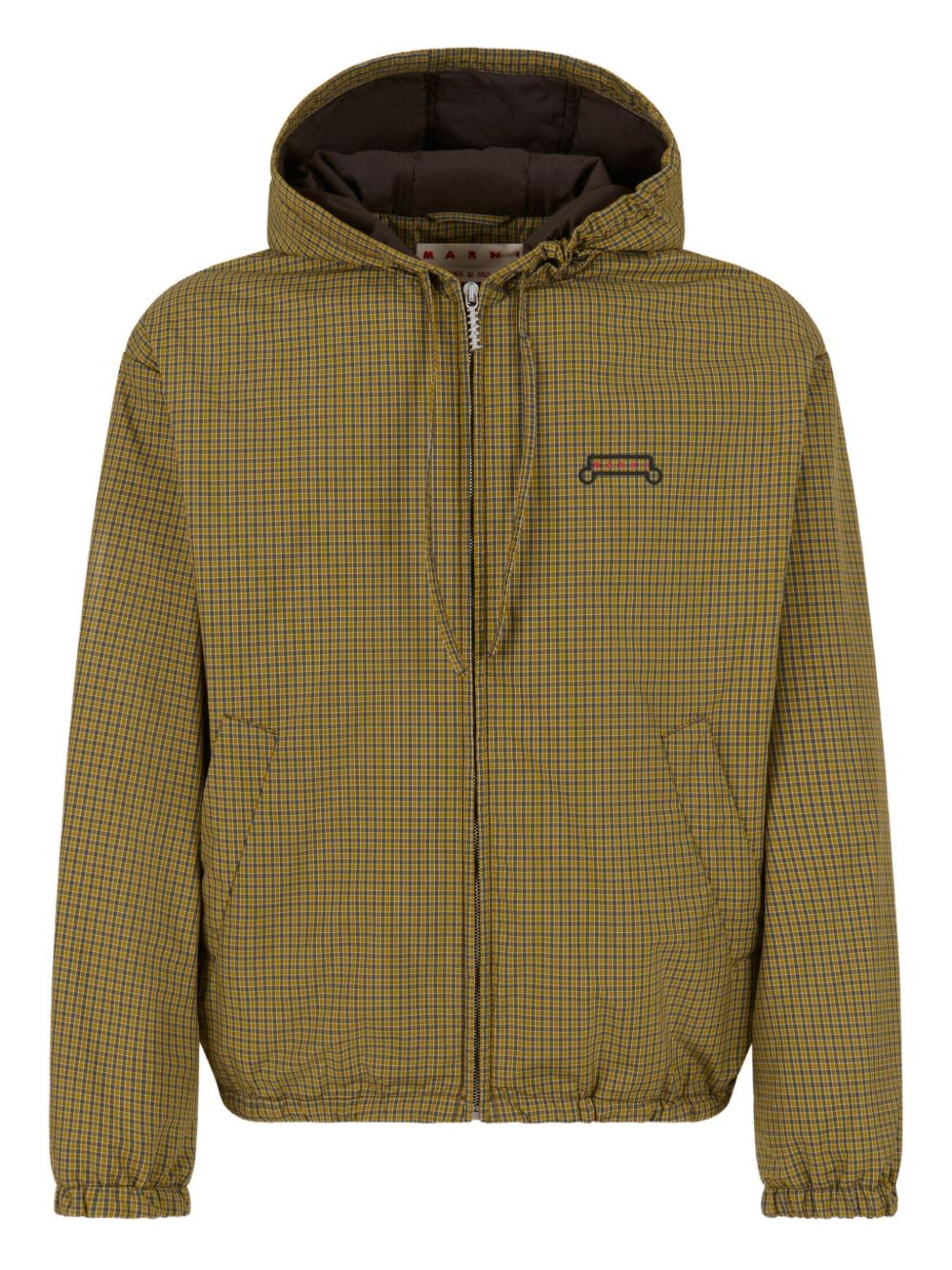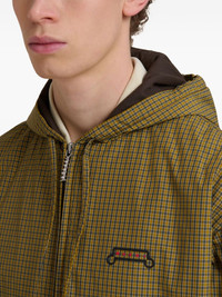 check-print hooded jacket Highlights - Olive green - Front zip fastening - Adjustable drawstring hood - Elasticated cuffs - Side welt pockets Made in Italy Composition Polyamide 100% Washing instructions Read Manufacturer Guidelines