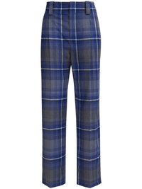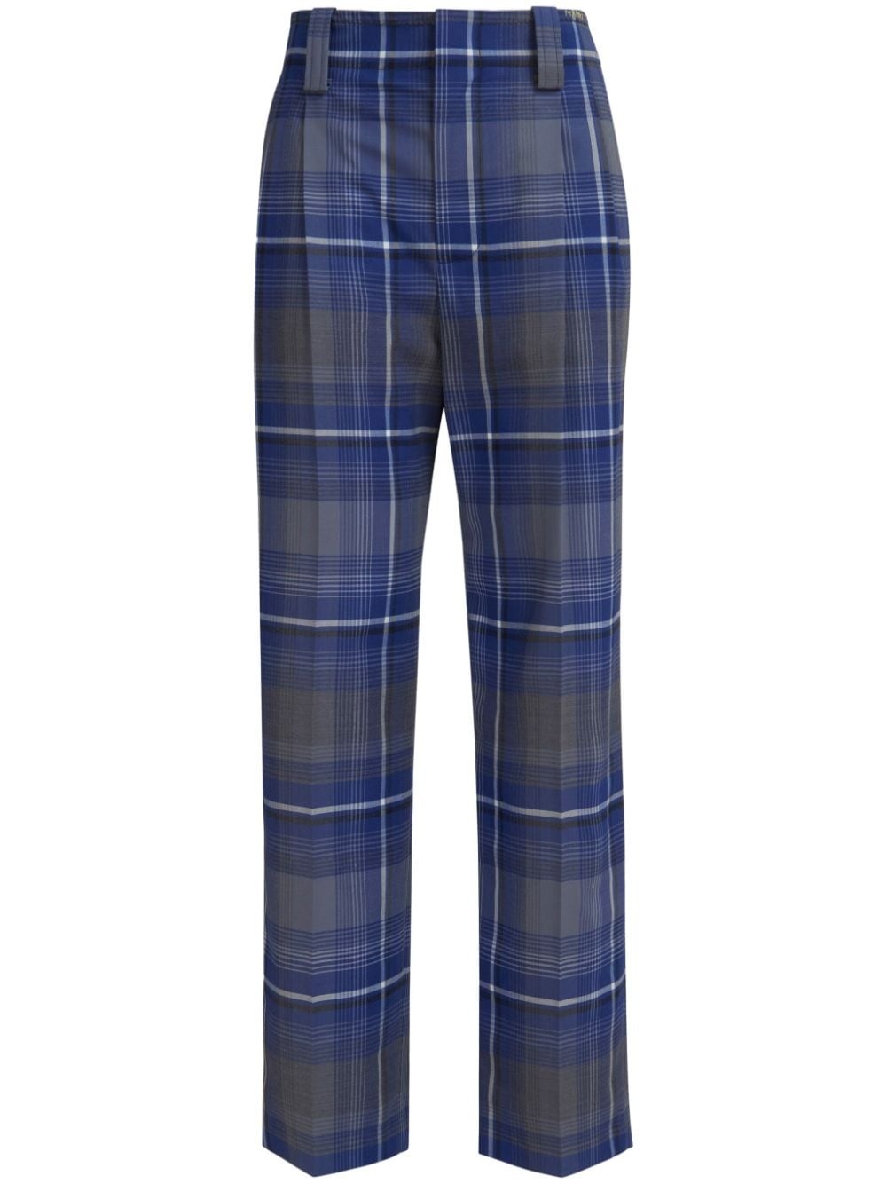check-print tailored trousers Highlights - Blue - Virgin wool blend - Stretch-design - Check pattern - Tailored design - Belt loops - Pleat detailing - Embroidered logo - Two side slit pockets - Rear flap pocket - Rear jetted pocket - Straight leg - Mid-rise - Concealed front fastening Made in Italy Composition Polyester 53%, Virgin Wool 43%, Elastane 4%