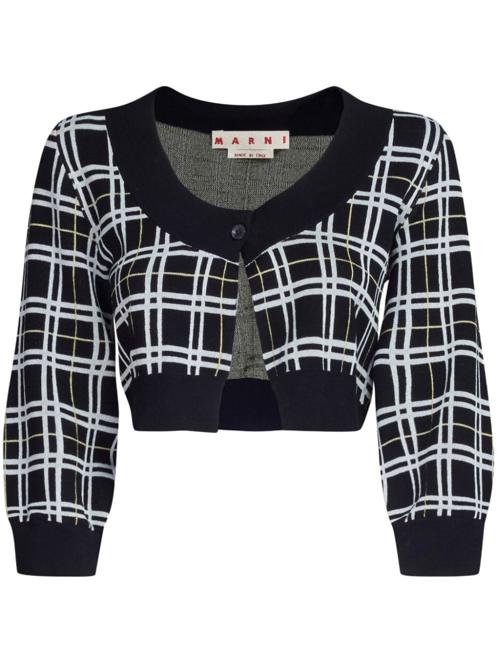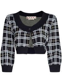 checked cropped cardigan Highlights - Black/white - Virgin wool - Check pattern - Cropped - Front button fastening - Long sleeves - Straight hem Imported Composition Virgin Wool 100% SIZE & FIT Measurement SLEEVE LENGTH 17.99 in(45.7 cm) LENGTH 14.01 in(35.6 cm) BUST 30 in(76.2 cm) Washing instructions Do Not Wash/Do Not Dry Clean