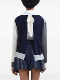 colourblock sweater Highlights - Navy blue/medium grey/ivory white - Cashmere - Knitted construction - Colour-block panelled design - Rear tie fastening - Crew neck - Embroidered logo - Drop shoulder - Long sleeves - Open back - Ribbed cuffs and hem Made in Italy Composition Cashmere 100%
