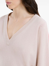 PEACH PINK WOOL AND CASHMERE COLOR BLOCK V-NECK SWEATER