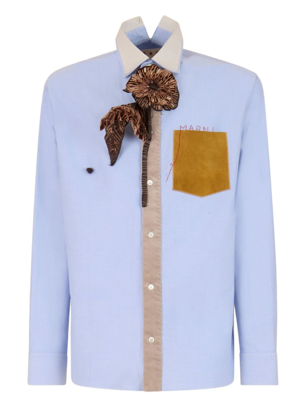 BLUE COTTON SHIRT WITH MARNI MENDING EMBROIDERY