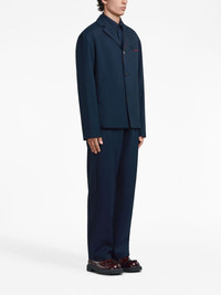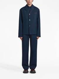 contrast-stitch wool blazer Marni elevates this navy blue blazer with subtle decorative detailing. It's expertly cut in Italy from virgin wool and punctuated with contrast red stitching to the lapel and chest welt pocket. Highlights - Navy blue - Virgin wool - Contrast stitching - Notched lapels - Chest welt pocket - Front button fastening - Two side welt pockets - Long sleeves - Straight hem Made in Italy Composition Virgin Wool 100% Washing instructions Do Not Wash/Do Not Dry Clean