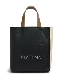 MUSEO SOFT MINI BAG IN BLACK CREAM AND BROWN LEATHER WITH MARNI MENDING