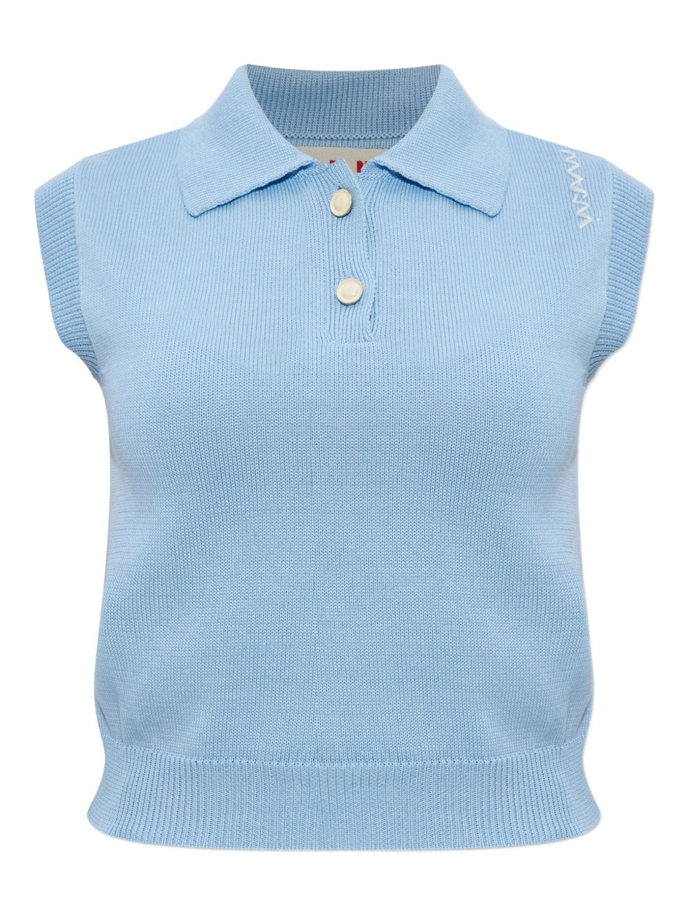 cotton polo top Highlights - Blue - Front button placket - Polo collar - Sleeveless Imported Composition Cotton 100%
