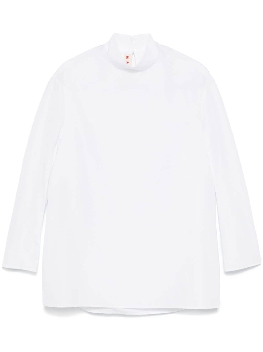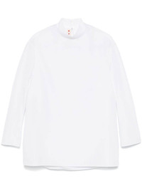 cotton shirt Highlights - White - Cotton - Poplin texture - Single rear button fastening - Mock neck - Drop shoulder - Long sleeves - Keyhole detail to the rear - Rear curved hem Made in Italy Composition Cotton 100% SIZE & FIT Model measurements Height 5 ft 11 in(1.8 m) Bust/Chest 32.67 in(83 cm) Hips 35.03 in(89 cm) Waist 25.19 in(64 cm) FittingInformation Designed to be unstructured, offering a loose fit throughout Made from a midweight non-stretch fabric