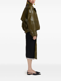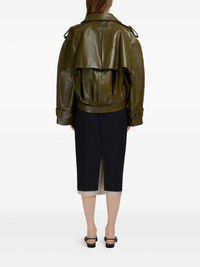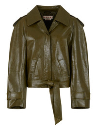 cropped leather jacket Highlights - Olive green - Classic collar - Long sleeves - Belted waist - Epaulettes Made in Italy Composition Lining: Viscose 100% Outer: Goat Skin 100% Washing instructions Read Manufacturer Guidelines