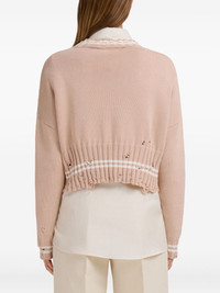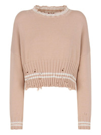 cropped sweater Highlights - Sand beige - Crew neck - Long sleeves - Contrasting border - Distressed effect - Ribbed cuffs and hem Made in Italy Composition Cotton 100%