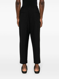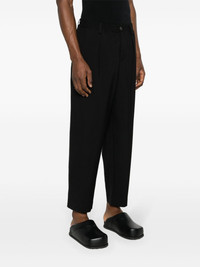 cropped wool tapered trousers Highlights - Black - Virgin wool - Elasticated waistband - Belt loops at the waist - Two side slash pockets - Pleat detailing - Two rear button-fastening jetted pockets - Internal logo tag - Cropped - Tapered leg - Button fly fastening Imported Composition Outer: Virgin Wool 100% Lining: Cotton 69%, Polyamide 31% SIZE & FIT Model measurements Height 6 ft 2 in(1.89 m) Bust/Chest 39.76 in(101 cm) Hips 37.4 in(95 cm) Waist 29.92 in(76 cm) FittingInformation Designed for a tapered leg, offering a loose unrestricted fit over the leg with a closer fit towards the ankle Adjust this piece’s waistband to your preference using the drawstring Made from a midweight non-stretch fabric This piece fits true to size – take your usual size Washing instructions Dry Clean Only