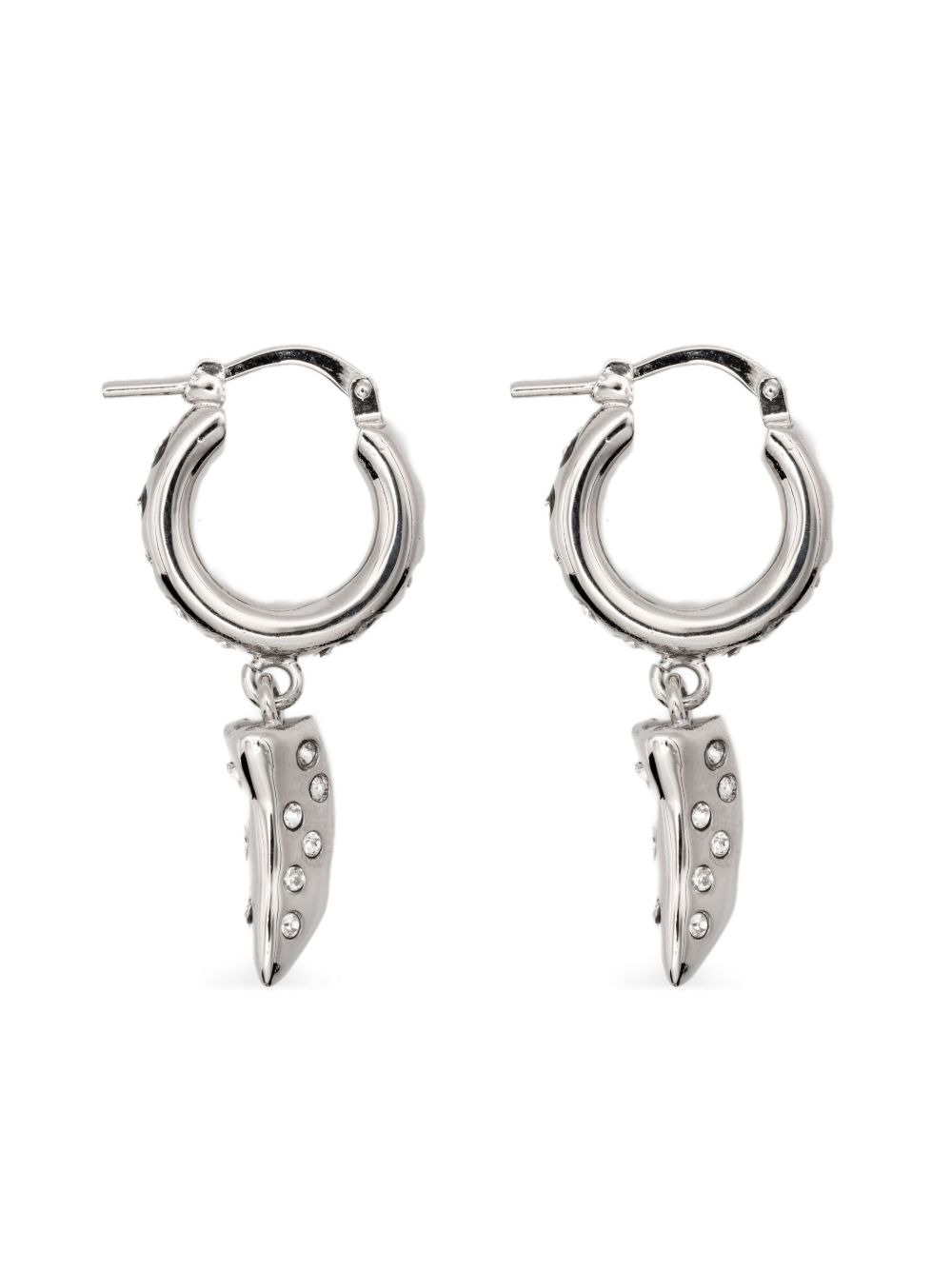 crystal-embellished hoop earrings Highlights - Palladium - Hoop design - Crystal embellishments - Stone-setting crystals - Hinged fastening Made in Italy SIZE & FIT Model measurements Height 5 ft 9 in(1.75 m) Bust/Chest 32.67 in(83 cm) Hips 36.22 in(92 cm) Waist 24.8 in(63 cm) Measurement HEIGHT 1.33 in(3.4 cm) Weight (single earring) 6 g(6 g) WIDTH 0.23 in(0.6 cm)