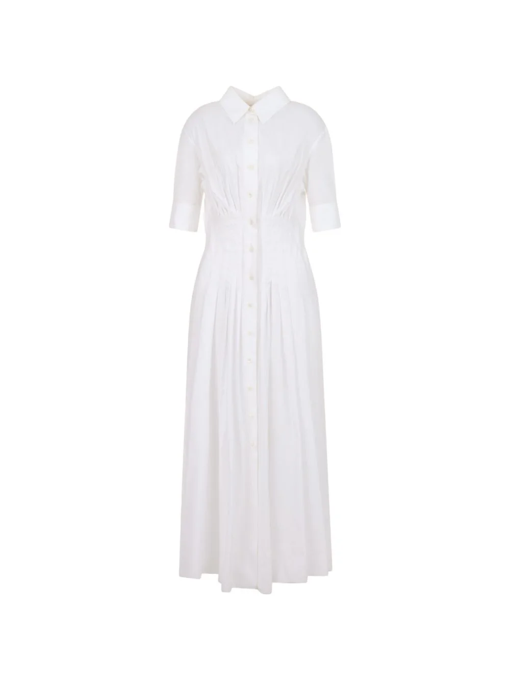 cuffed cinched dress Highlights - White - Cotton - Collared - Button fastening - Cuffed sleeves - Teardrop opening Made in Italy Composition Cotton 100% Washing instructions Read Manufacturer Guidelines