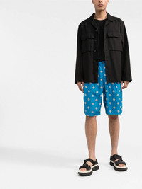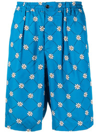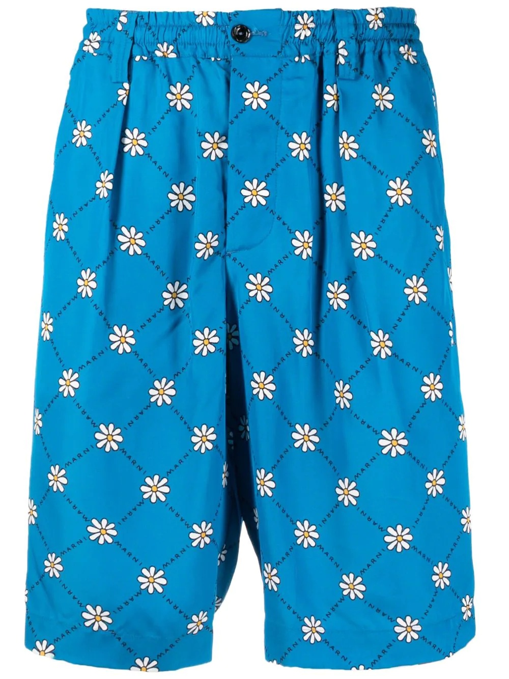 daisy-print track shorts Marni showcases their creative approach with these track shorts. A bold blue hue and playful daisy print create a cheerful finish for the pair. Imported Composition Outer: Viscose 100% Lining: Cotton 100% SIZE & FIT Model measurements Height 6 ft 2 in(1.88 m) Bust/Chest 35.03 in(89 cm) Hips 36.22 in(92 cm) Waist 29.13 in(74 cm) FittingInformation This piece fits true to size. We recommend you get your regular size Designed for a slim fit at the waist and loose over the leg Made with a mid-weight non-stretch fabric Washing instructions Hand Wash