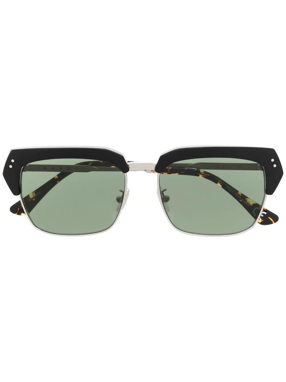 debossed logo sunglasses silver/ green/ black debossed logo to the side square frame tinted lenses straight arms curved tips Made in Italy Composition Acetate 100%, Metal 100% SIZE & FIT Measurement Arm Length 5.9 in(15 cm) Bridge Width 0.66 in(1.7 cm) Lens Diameter 2.24 in(5.7 cm) Total Width 5.78 in(14.7 cm)