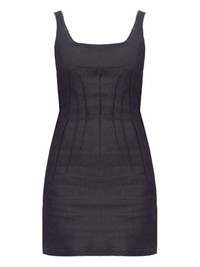 denim mini dress Highlights - Dark blue - Square neck - Seam detailing - Sleeveless design - Frayed hem Made in Italy Composition Cotton 98%, Elastane 2% Washing instructions Read Manufacturer Guidelines