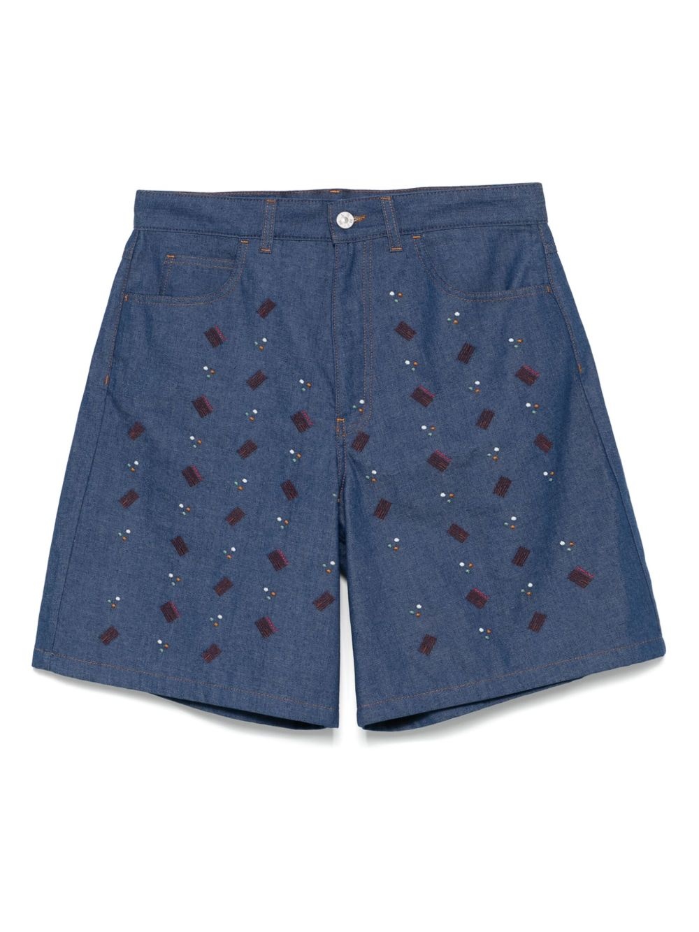denim shorts Highlights - Navy blue - Concealed fly and button fastening - Belt loops - Classic five pockets - Embroidered motif Made in Italy Composition Lining: Cotton 64%, Polyamide 36% Outer: Cotton 100% SIZE & FIT Model measurements Height 6 ft 0 in(1.84 m) Bust/Chest 37.79 in(96 cm) Hips 37 in(94 cm) Waist 31.49 in(80 cm) FittingInformation Designed with a wide leg, offering a loose and roomy fit Sturdy and hard-wearing, this denim piece offers no stretch
