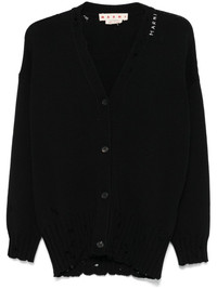 distressed cardigan Highlights - Black - Cotton - Knitted construction - Distressed finish - Front button fastening - V-neck - Embroidered logo to the front - Long sleeves - Ribbed cuffs and hem Made in Italy Composition Cotton 100% SIZE & FIT Model measurements Height 5 ft 10 in(1.78 m) Bust/Chest 33.85 in(86 cm) Hips 36.61 in(93 cm) Waist 26.77 in(68 cm) FittingInformation Designed to be unstructured, offering a loose fit throughout Made with a midweight knit, this piece offers some stretch