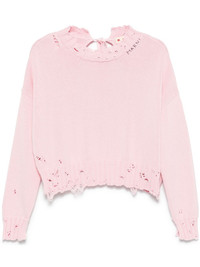 dishevelled cotton sweater Highlights - Bubblegum pink - Rear tie fastening - Ribbed cuffs and hem - Open back - Side slits Made in Italy Composition Cotton 100% SIZE & FIT Model measurements Height 5 ft 10 in(1.78 m) Bust/Chest 33.85 in(86 cm) Hips 36.61 in(93 cm) Waist 26.77 in(68 cm) FittingInformation Designed to be unstructured, offering a loose fit throughout Made with a midweight knit, this piece offers some stretch