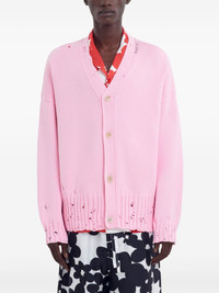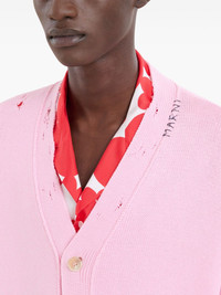 distressed cardigan Highlights - Pink - Cotton - Knitted construction - Distressed finish - Front button fastening - V-neck - Embroidered logo to the side - Drop shoulder - Long sleeves - Ribbed cuffs and hem Made in Italy Composition Cotton 100%