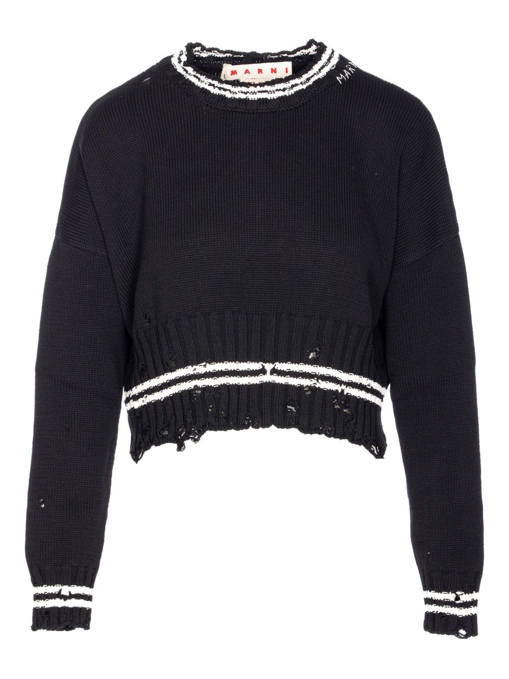 distressed-effect jumper Highlights - Black - Embroidered logo - Stripe detailing - Crew neck - Long sleeves Made in Italy Composition Cotton 100%